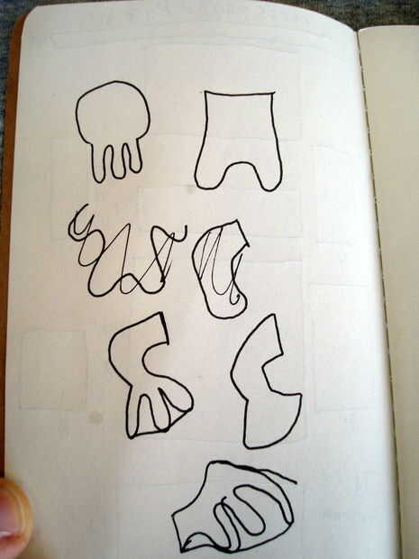 sabía que el material de la camiseta sería elástico por lo que no tenía que preocuparse por las estructuras complejas. Me voy a mantener esto simple. Así que rompí mi almohadilla garabatos y comenzó a bosquejar Ideas ásperos de la forma. Para ello tuve que pensar en qué cosas eran la esencia de Cthulhu. Los tentáculos de la boca y las alas eran lo que vino a mi mente primero. Entonces pensé en las manos palmeadas pero cambié de opinión más adelante. Una vez que tuve estos garabatos pude han explorado en una computadora y hace un patrón de escala pero con locura de agarre me decidí improvisar.
