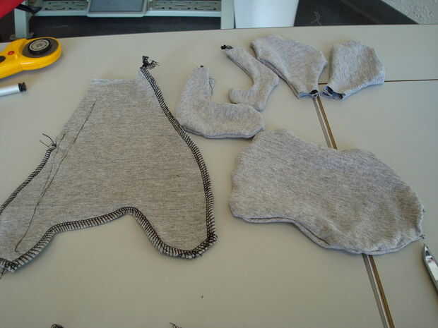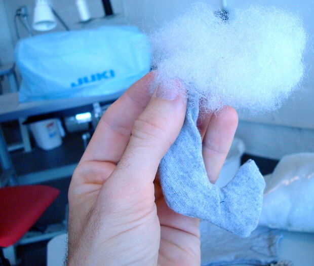 Una vez que los pedazos eran derecha hacia fuera comenzó relleno de los brazos. Asegurándose de dejar una pulgada (2,54 cm) interna para unir al cuerpo.