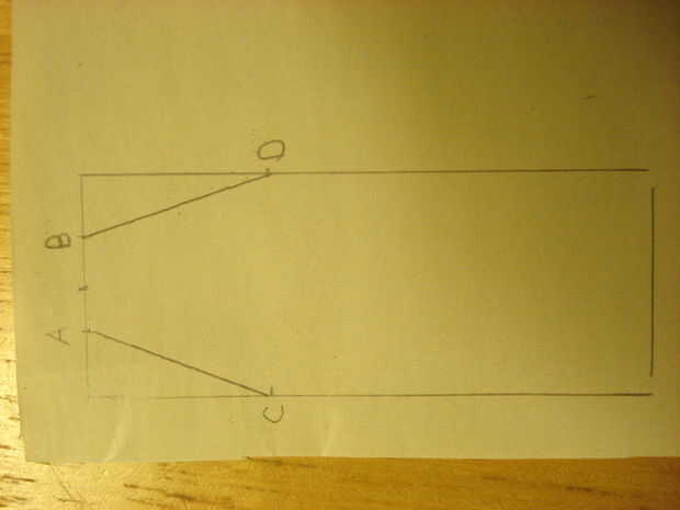 8. dibujar una línea que conecta los puntos A y C y otra línea que une puntos B y D.