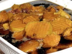 El siguiente paso es verter lentamente el almíbar sobre las patatas asegurando para los muy a fondo. Ahora bien, si el hacerlo la noche antes de que esto es una gran manera para ahorrar tiempo en la cocina durante las vacaciones... SUGERENCIA... SUGERENCIA.