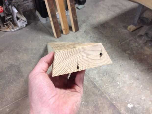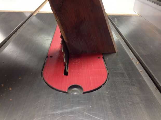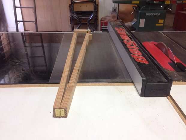Último, hacer 2 placas superiores ejecutando 24" espacios en blanco por el conjunto de la Sierra de mesa en un inglete de 5 grados. Los cartabones deben estar enfrente de uno otro y sacar como poco material como sea posible.