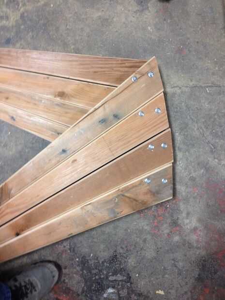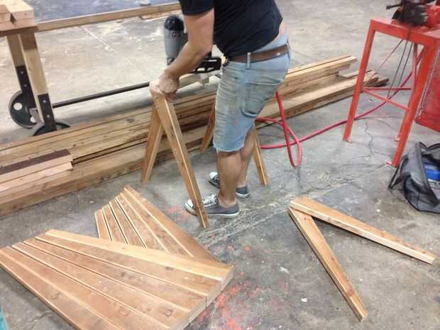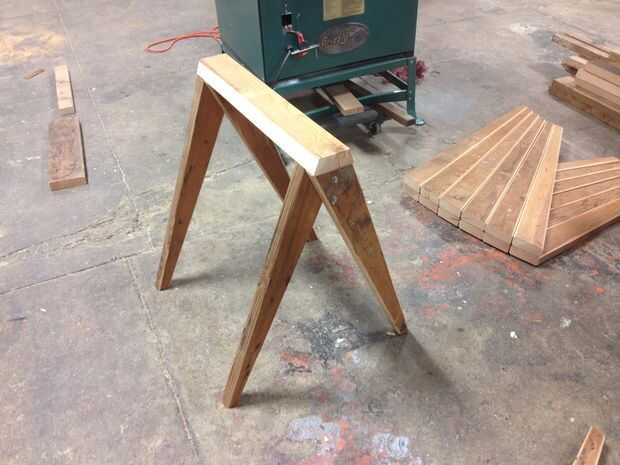 Párate a un conjunto de armazones. Fije la placa superior a ras de la tapa del uno-marco con pegamento y tornillos. El extremo de la placa superior debe quedar al ras con la superficie exterior de la estructura a. Repita en el otro lado con el otro a-frame. El par terminado debe ser capaces de anidar juntos, un juego de piernas en el otro.