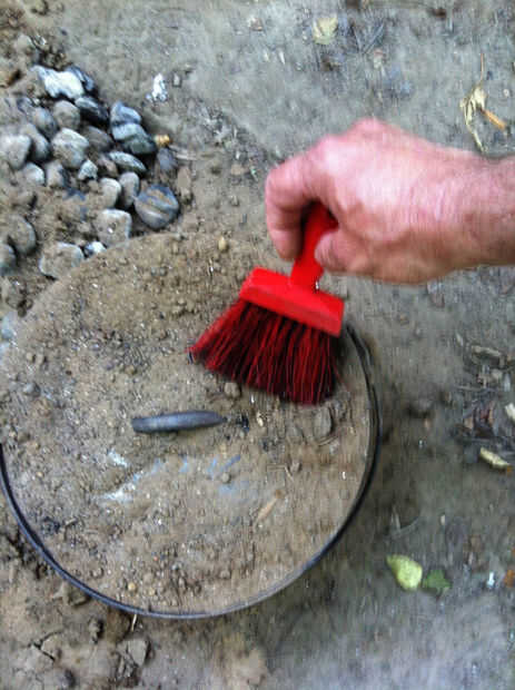 5 horas más tarde está listo para salir de la tierra. Barrer el carbón y la suciedad de la tapa. Nota: los carbones en el fondo son de la parte superior y estaban muertos - pero asado era perfecto.