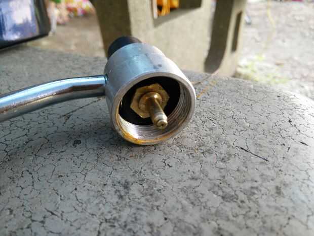 Desconecte la botella y dentro del lado de la botella del regulador encontrará una conexión algo como esto. Mina necesita 13mm toma de pozo profundos que tuve unos días de atrás cuando completé este servicio aquí en el campamento. Afortunadamente mi zócalo superficial de 13mm trabajado, coloca en el conector primero y luego fue suficiente profundidad para la impulsión de trinquete conseguir un bocado en el enchufe para sacarlo. Una vez fuera, al otro lado de esta guarnición encontrarás otra válvula similar en apariencia a una válvula del neumático. Lo siento, que estoy siendo el camping y no muy afilado en la idea de desarmar un regulador de trabajo nuevo para fotos de los interiores. Junto con esto, verás un pequeño botón de plástico. La idea original es que el pezón este botón encajaría en el zócalo de la base primavera. Es el disco del metal de que se vea la parte inferior del orificio roscado que retiró la guarnición. Básicamente sobre este disco reside un resorte de fuerza apropiado para regular la presión de propano según sea necesario. Esta fuerza se transfiere al vástago de la válvula en la conexión que quita mediante el botón de plástico. El problema es este botón puede venir de la toma de corriente y cambio al lado así que la válvula no participarán y flujo de gas se detiene aquí... He encontrado una punta en una revisión publicada en una web de venta por menor de estufas similares. Esto sugiere para pegar el pezón en este agujero para mantenerlo en su lugar. Una solución perfectamente bien excepto había unos bocas hambrientas esperando breaky y no quería esperar. Después de toquetear y examinar las cosas, parecía que el desplazamiento de este botón es prácticamente idéntico orientado hacia arriba o hacia abajo. También parece que la entrerrosca hueco encaja perfectamente hacia abajo sobre el vástago de la válvula de la conexión y esta relación parece tener suficiente captura para mantener el botón en su lugar. Yo diría que sería una buena idea utilizar sellador de roscas en las roscas de conexión al volver a armar si lo tienes. No tengo ninguna en el camping pero siente que la Junta de goma mantendrá gas escape a la atmósfera fuera del sistema que creo que es más importante. Cualquier gas que puede gotear más allá de los hilos de conexión, pasar por el regulador de la estufa suministro presión inferior debe ser insignificante. También creo que algunos botones tiene un niple de sólidos por lo que probablemente necesitará recurrir a pegar en este caso. En mi caso tuve la guarnición vertical con el botón sentado en la parte superior alrededor de la espiga de válvula y muy cuidadosamente atornillado el regulador de cuerpo/suministro tubo abajo sobre él finalmente apretar la conexión con el zócalo y el trinquete...
