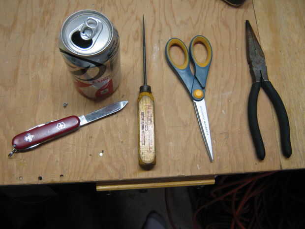 para este proyecto se necesita; un aluminio puede (vacío) un cortador de cuchillo o caja de bolsillo picahielos o una tachuela tijeras 90% + alcohol coleman líquido o un contenedor para hervir agua o cocinar cosas en