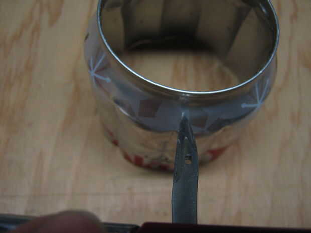luego tomarás tu Picahielo, punzón de cuchillo o pulgar de la tachuela y perforar un pequeño agujero en la parte superior de la lata.