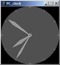 Haga clic en la flecha de la parte superior izquierda para ejecutar el programa ("el bosquejo") y después de unos segundos un clockface aparecerá en la pantalla que muestra la hora del PC.