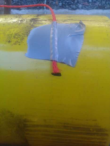 En cambio agarró un trozo de cuerda, había marcada una circunferencia, había doblado por la mitad y había marcado el centro, luego transfiere al cilindro.