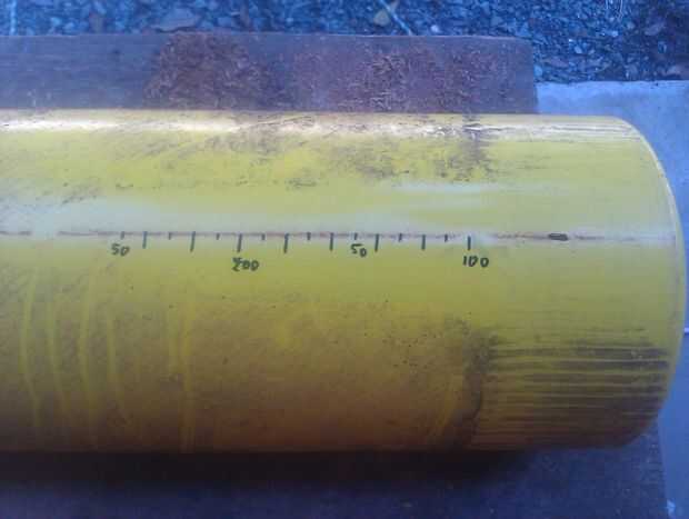 Asegúrese de que su cilindro es plomo antes de marcar las líneas verticales. Mis heces de sierra no están perfectamente niveladas y haciendo sobre el terreno no iba a trabajar en la línea de plomada debe extenderse más allá de la parte inferior del cilindro (idealmente)