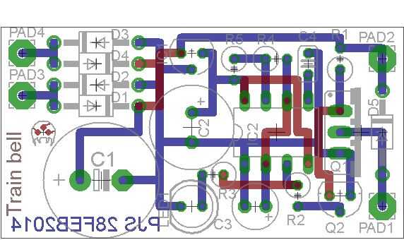 Una vez que esté montado el circuito fije una campana a los terminales de salida (PAD1, PAD2). Nota Si la campana está polarizada PAD2 es positivo y PAD1 es negitive. Conecte una fuente de alimentación a los terminales de entrada (PAD3, 4). Nota no hay ninguna entrada polaridad así que usted puede conectar la entrada de los cables de cualquier manera.