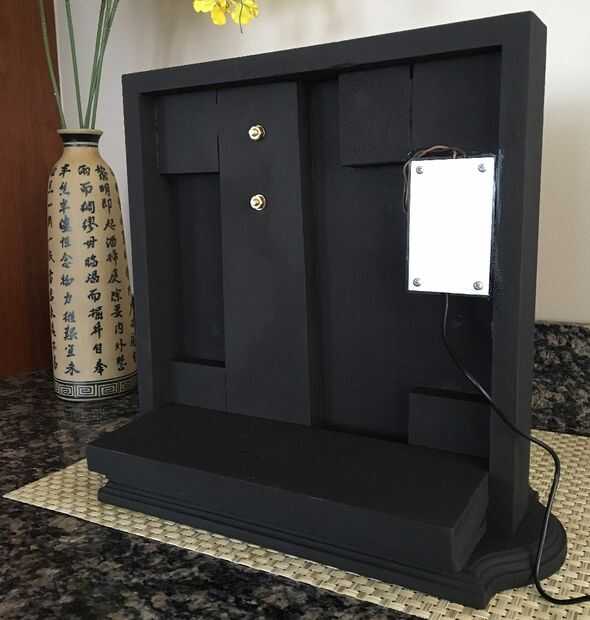 En lugar de montar permanentemente mi campana a la pared, decidí mantener portátil, elaboración de un soporte de madera personalizado para montar el motor del sacudidor y timbre. Luego acabado en mate negro, para que coincida con la Junta de campana en el serie de Downton Abbey.