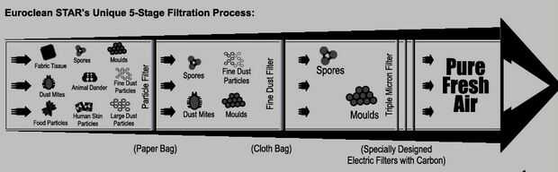 La primera etapa consiste en el aire entrante pase a través de una partícula especial, anti-microbiana, biocida tratado filtro de papel que ha sido tratado para la protección contra bacterias, hongos y levaduras. Esta bolsa de papel es reemplazable y puede utilizarse por hasta cinco veces. Sin embargo, para mejores resultados, podemos utilizar bolsa fresca cada vez que utilice la campana de flujo laminar. Este aire pasa a través de una bolsa de tela, que filtra cualquier partícula que escapa a través de la bolsa de papel. Este bolso se puede quitar, limpiar y luego se colocó otra vez en posición. Las siguientes tres etapas implican el aire pase a través de filtros eléctricos incorporados especialmente diseñados con carbono que sopla un aire totalmente puro.