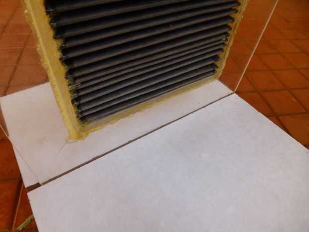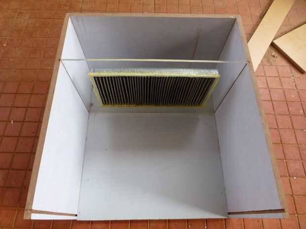 - Coloque el conjunto del filtro HEPA dentro de las juntas laterales en las ranuras. Ahora usted puede tomar la medida exacta de la Junta de la parte posterior, que es de 39,50 centímetros por centímetros 26,50 tamaño (altura igual para los tres lados)