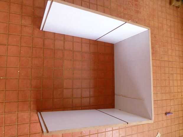 - Corte el tablero de la prensa hasta el tamaño necesario y fijar en la parte inferior con pegamento y clavos.