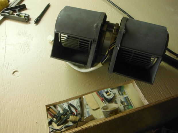 Aquí es donde forma cumple la función. Con cinta de enmascarar, marca de la ranura en la tapa para el ventilador. En mi caso era 10" de ancho por 4" de profundidad. Perfore orificios piloto luego recórtela con una sierra de calar o un Dremel con una broca de corte rotatorio. Usando el agujero que sólo se cortan, centro del ventilador que está utilizando en el cuadro que creó anteriormente. Era capaz de usar tornillos para madera directamente a través de la carcasa de plástico del ventilador (sin interferir con la función del ventilador de escape). Podría haber sido mejor, pero para un proyecto personal ha trabajado a gran. Corriente de los cables para el ventilador vendrá en un minuto.