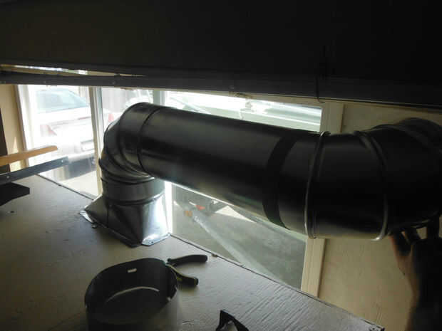Para tuberías que decidí usar tubo de 8" de diámetro. Usé lo que normalmente es un tubo de 8"== > 10" x 4" piso ventilación, 90deg x 2 vueltas, una 2' sección de la tubería y una 8" secadora. Usted podría pintar la ventilación como lo hice.