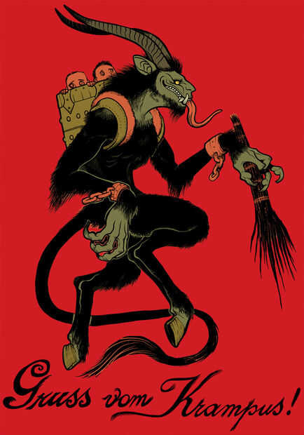 Para quien no esté familiarizado con Krampus: Krampus es un personaje que se encuentra en folklore germánico, croata y rumano, sólo para nombrar unos pocos. Se refiere a veces como "el diablo de la Navidad" y es esencialmente la Santa contra, a pesar de trabajar en el misma día de fiesta. Mientras que recompensas Santa porta bien los niños con regalos, Krampus busca mal niñas y niños y rellena en su saco. Claramente, los padres hace siglos de acuerdo ese miedo es un motivador mucho mejor que el refuerzo positivo. Mientras que la mayoría de representaciones históricas Krampus con pelaje negro o marrón, estoy viendo interpretaciones más modernas en la que es blanca, algo así como un muñeco de nieve abominable. Fui con negro y rojo para un clásico, sin lugar a dudas amenazante mirada.