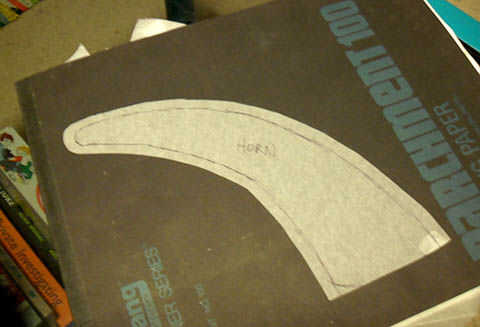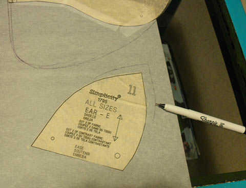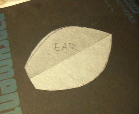 Lo Iniciado por remontar la punta de una plantilla existente de la oreja desde el paquete de simplicidad. Si usted compra este paquete, usted obtendrá formas de orejas de un gato, el oso y el zorro. De Krampus, queremos un oblongo más, forma de oreja de la cabra. Con la punta de la oreja de zorro como punto de partida, que luego de bosquejar una nueva forma. Me aseguré que mi plantilla de oído era simétrica por corte a mitad, plegado sobre, el trazo y el corte otra vez.