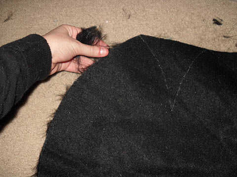Cortar las piezas con tijeras de tela. Usted encontrará que su chaqueta de piel falsa vertiente mucho a lo largo de las líneas de sus corte (Foto 2). Selecciona los bordes para recoger la piel suelta antes de continuar con el proyecto. Ahorrará usted un montón de lío en sus otras áreas de trabajo más tarde.
