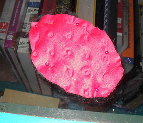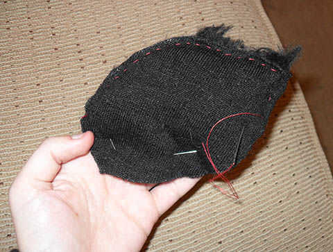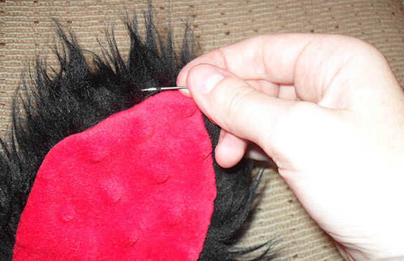 Si lo desea, puede ejecutar la oreja a través de una máquina de coser. Elegí a mano coser debido a la piel más gruesa (y porque estaba en medio de una película y no quería dejar la televisión).