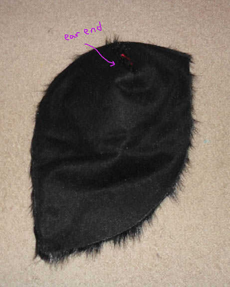 PIN una oreja derecha, en la parte inferior de la ranura (costura encima de la cabeza).