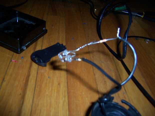 Ahora Suelde la resistencia a uno de los cables. Luego soldar los LEDs en paralelo, un extremo a la resistencia y el otro al cable de la soldadura.