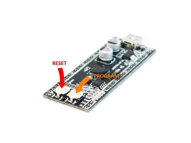 2. una vez que el USB está conectado, el solenoide no enciende y nada se ha roto, usted puede hacer prosencéfalo entrar en modo programación pulsando el botón PRG mientras presiona el botón marcado primero (con el puerto USB hacia arriba, PRG está a la izquierda, el primero está a la derecha). Puede que necesite hacer esto dos veces para que funcione.