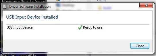 6. una vez que ha copiado el archivo, puede ahora desenchufe el prosencéfalo, o golpear el reset (botón RST). La próxima vez que conecte prosencéfalo en el ordenador (o pulse RST), Windows se reconocen como un "dispositivo de entrada USB". Windows puede intentar buscar en línea para los conductores, antes de finalmente darse cuenta de que realmente ya tiene preinstalado. Prosencéfalo es utilizando un perfil genérico USB HID, así que no hay controladores especiales se requieren.
