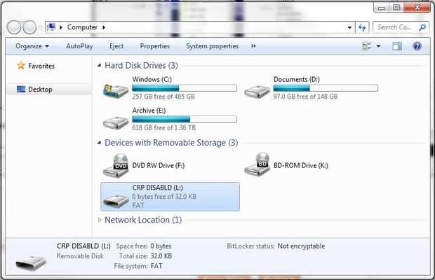 3. si todo va bien, si enciende el LED superior derecha en Forebrain y prosencéfalo aparecerá en su ordenador como una unidad flash llamada "PCR DISABLED". La apertura de esta unidad se revela un archivo único solitario "firmware.bin", borrar esto de la unidad (tienes que borrar esto de lo contrario el equipo se quejan de no haber espacio suficiente).