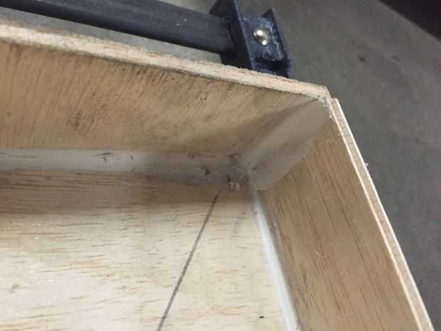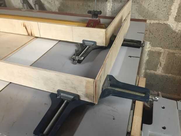 Sólo he podido encontrar dos de mis pinzas de la esquina, así que sólo pude pegar dos esquinas en un momento. Esto resultó para ser una bendición disfrazada. Pegar dos esquinas y deje establecido. Estos hará que las paredes laterales de la cámara de vacío. Pegar los bordes del piso y las paredes de la abrazadera en el piso con las abrazaderas de la barra. Aplique el adhesivo calafateo o construcción al interior de las juntas para hacer un sellado al vacío.
