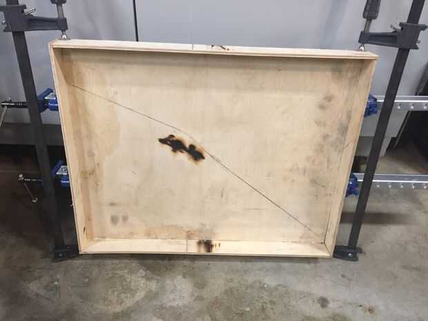 Ya que este utiliza madera contrachapada de ¼", es probablemente una buena idea para hacer un par de tiras de apoyo para ir en el centro de la planta para evitar arquear en bajo vacío pesado.