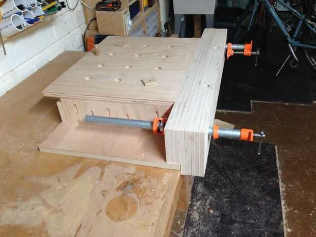 Basé mi diseño de muchos otros, específicamente la versión de Jay Bates y este artículo Del carpintero americano . El producto final es de una combinación de un tornillo moxon y twin. Mi toque es añadir agujeros de perro y usar el cuerpo como una tabla de tiro descendente, que no he visto a nadie hacer. Tal vez hay una razón. Supongo que averiguaremos!