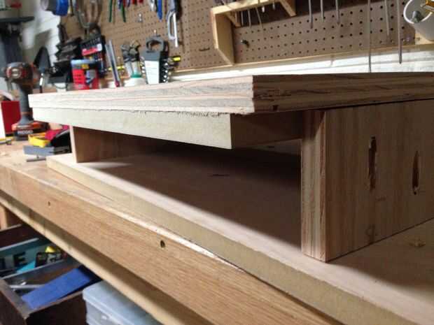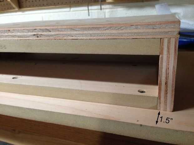 Calcular la altura midiendo desde mi mesa de montaje en mi codo cuando el doblado a 90 grados. Esto le da una altura total de 5". Esto significa que necesito 4.25" de altura de la mesa (además de una base de 3/4") pero su altura será específico a sus medidas.