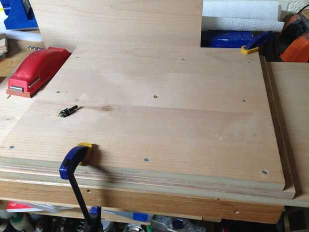 A partir de la mesa cogí algunos chatarra 3/4 capas y MDF para crear una caja resistente. 20" de ancho por 16" de profundidad parecía lo suficientemente grande como para trabajo de detalle, sin ser demasiado grande para moverse. La base es 30" de ancho para que coincida con la longitud de las mandíbulas.