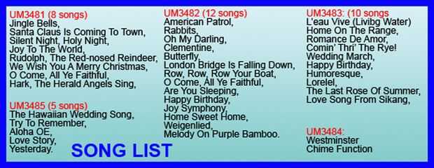 También puede utilizar alguno de estos 5 Chips mientras juegan diferente número de canciones grabadas al según la lista de canciones. El mismo circuito se aplica a todas las fichas nombradas abajo.