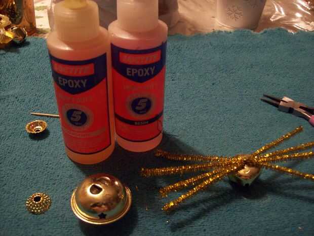 De todos modos, he mezclado el epoxi y slathered sobre el bucle en la campana más grande. Luego engancha la pequeña campana en el lazo y había sentado en la cima de la campana más grande.