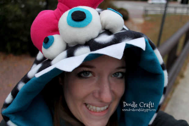 Terminé encontrando este polka puntos paño grueso y suave, así que fui con un diseño sencillo... y 3 ojos!