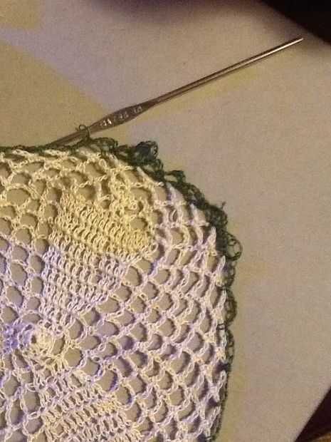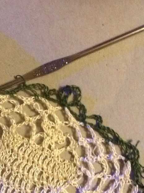 Repetir alrededor servilleta terminar con una puntilla cadena cinco y puntada de resbalón en el inicio de la puntada.