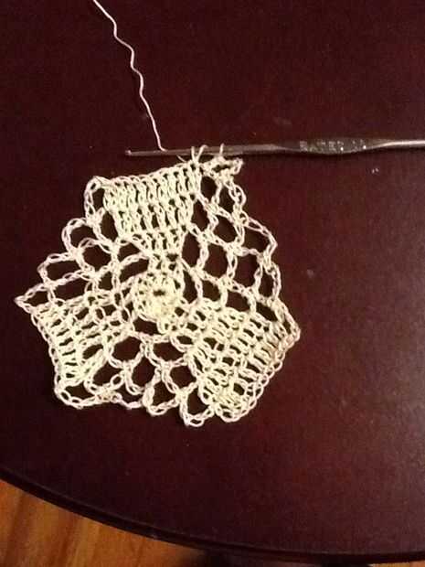 Repetir ch 5 y sc a través de los siguientes cuatro bucles, ch 5