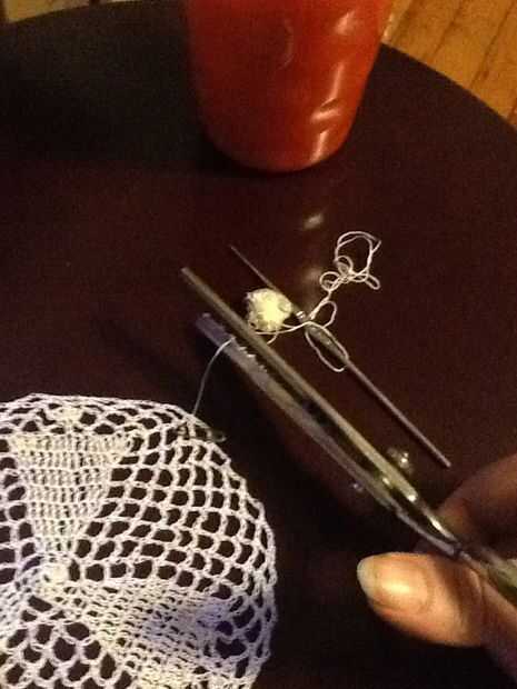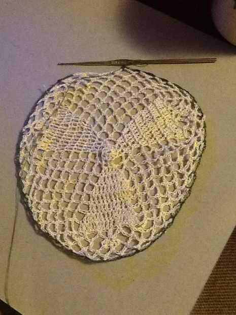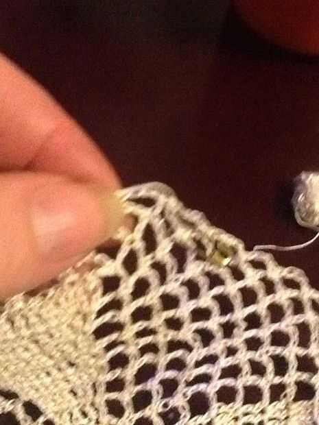 5 cadena sc en el siguiente lazo de ch, repetir todo terminando con ch 3 y un dc en el inicio de la puntada