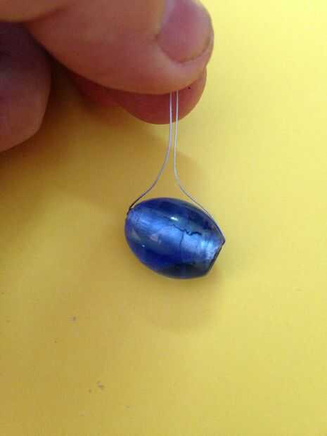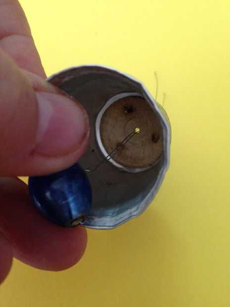 Toma un cordón y un trozo de alambre fino. El grano en el cable del hilo de rosca y doble el cable por la mitad para que el grano está en el pliegue. Empujar los extremos libres a través del orificio en la cápsula, luego tuerza el alambre para mantener el grano y vaina en su lugar.