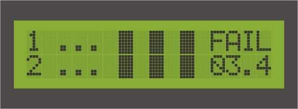 4. cuatro puntos al final de cada línea, hasta un par de mediciones se acaban. En cuanto termine un par de medición, el resultado de la verificación de tiempo aparecerán: OK si las mediciones se encuentra entre el límite 3 segundo, FAIL, si se exceden las medidas el límite. En la segunda línea, verás la diferencia de dos mediciones.