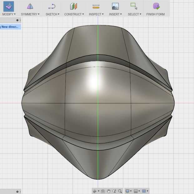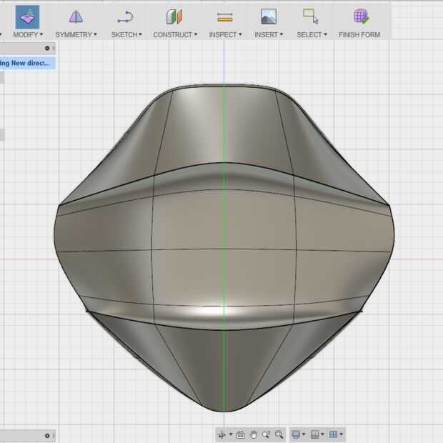 Como mencioné anteriormente, yo usaría la línea de tiempo (abajo) para saltar hacia adelante y hacia atrás entre comandos de modelo o iteraciones. Al principio no estaba contento con cómo embotado la porción central del anillo miraba así que decidí hacer más audaz, incorporando un centro de fútbol redondo en forma. Necesitaba añadir algunos bucles de borde para conseguirlo así que entré en el menú desplegable modificar y selecciona 'Inserte el borde'. Esto me permitió hacer una transición más manejable desde el pliegue superior, hacia el valle y hacia arriba y sobre el medio. Es importante tener en cuenta, la imagen que ya no tiene las líneas de la escultura es debido a la conversión del modelo a modo de modelo.