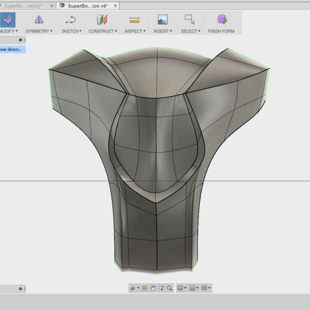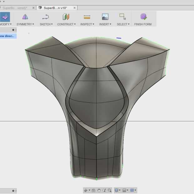 Una vez que estaba feliz con mi formulario general, yo aunque de empujando algunas caras dentro y fuera. Quería un fuerte borde arrugado para las piezas que resaltan así que fui a mi confianza menú modificar y selecciona el pliegue. Este Charrán, creó una cara agresivamente afilada en una zona que quería ser sutilmente redondo. Decidí eliminar algunos bordes de ciertos puntos en el panel lateral. Después de este anillo fue pensado para ser cómodamente advertir y tienen algunos logos legibles.
