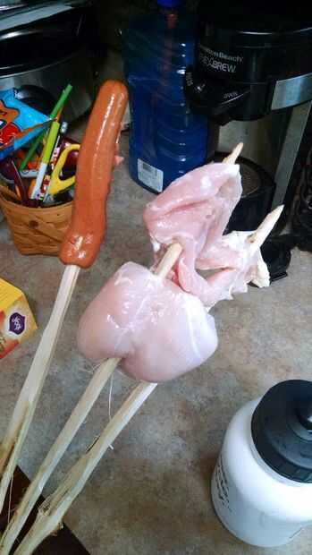 Notas. Si es carne fina como un bistec o una pechuga de pollo fina debe tejer sobre los puntos de la lanza.