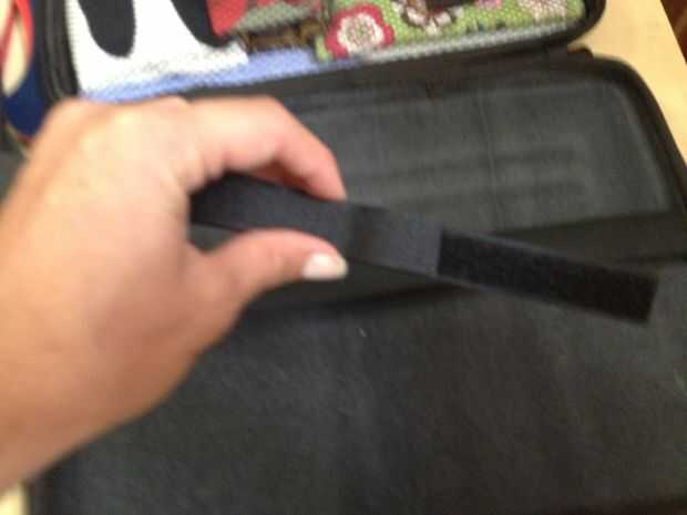 Usar una pistola de pegamento caliente, pegamento abajo el velcro cara rugosa a partir de la esquina. Ahora Mida la parte más suave del velcro para extender más el velcro a un lado áspero. (Usted puede esperar hacer esto hasta que sus artículos están en el lugar sólo para asegurarse). Independientemente de si se corta, adhiera un pequeño rincón el velcro suave sobre el velcro rugoso. Este será el único pegamento para el velcro superior.