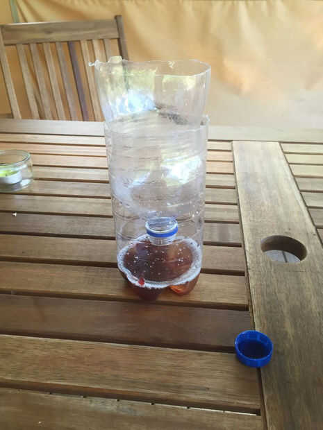 Esta versión muy simple atrae a los bichos con la promesa de algo dulce, atrapando a través de un orificio de entrada unidireccional.