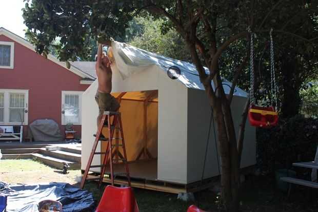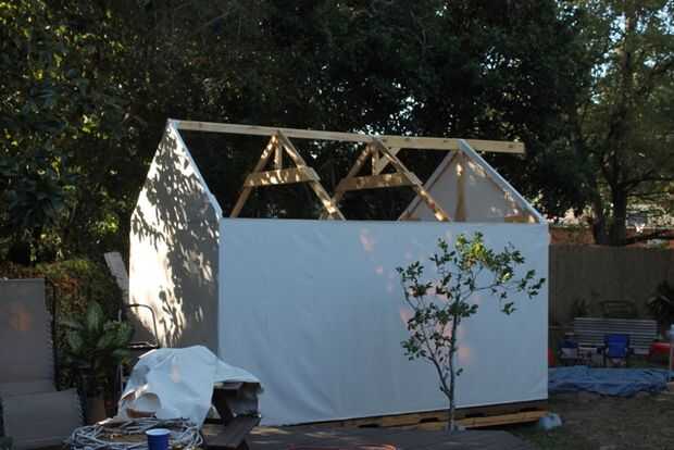Hemos construido un cobertizo. Lo llamamos nuestro galpón. En lugar de sólo un edificio de almacenamiento de metal débil, decidimos construir algo duradero y agradable en nuestro patio trasero para guardar bicicletas y herramientas. El costo de kit d