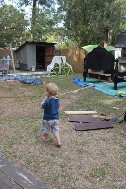 Tienes que dar le. Al mismo tiempo estaba enmarcado y tarpin' mi buena señora y lil' hombre estaban ocupados en el interior. Encontrar cosas que la gente no quería. Vieja rota rey cama convertido y retapizamos para un día completo de cama. Viejo resistido escritorio reconstruido y repintado. Antiguo lanzado hacia fuera el estante del pote hizo una gran lámpara de araña repurposed.