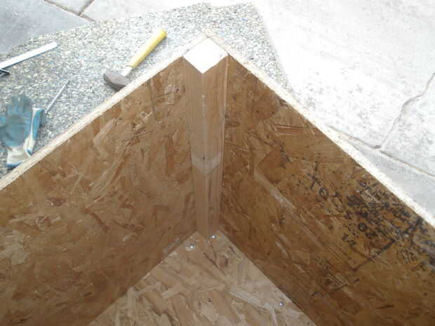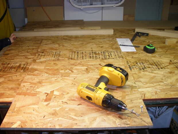 Se hace de la 1 hoja de OSB subfooring, una longitud de 2 x 2 y una longitud de moldura de la pared seca